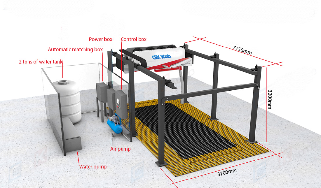 CBK Carwash adopts water and electricity separation technology to completely separate distribution box from moving components within washing bay.