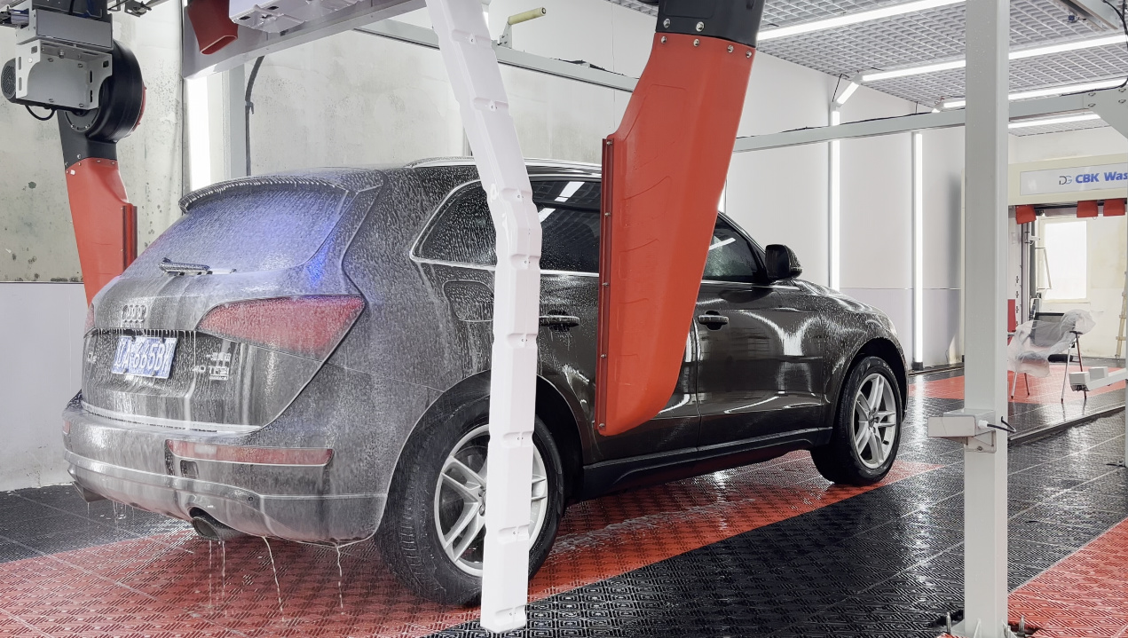 The water pressure nozzles can achieve pressures up to 100 bars, and the robotic arm is capable of washing the vehicle with consistent speed and pressure. As a result, a better cleaning effect.