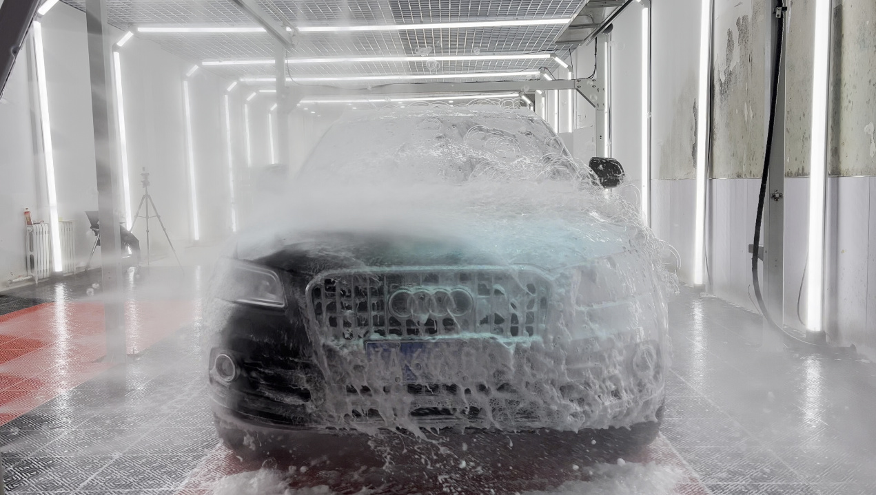 1.Spray the car wash foam at 360 degrees.